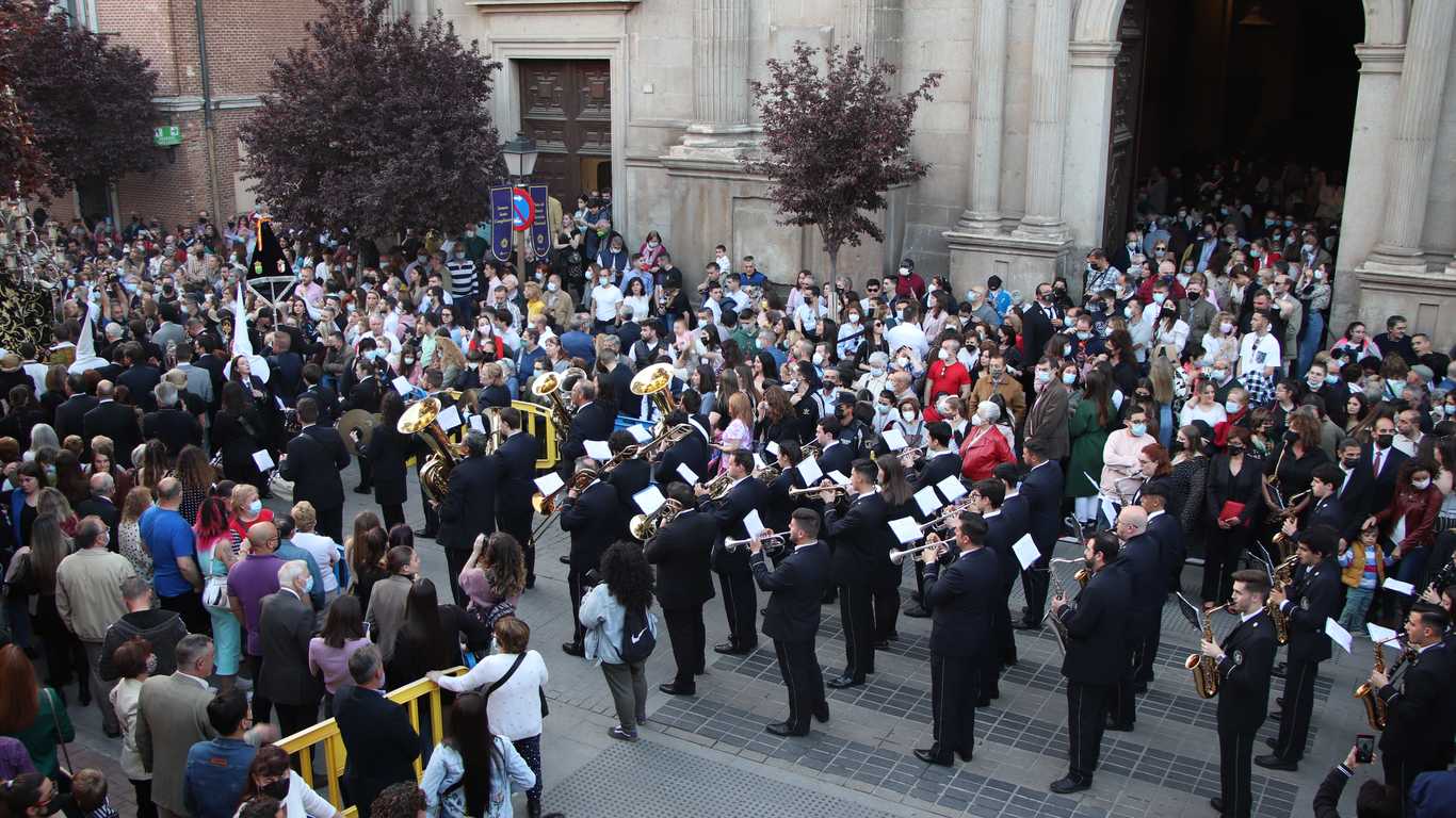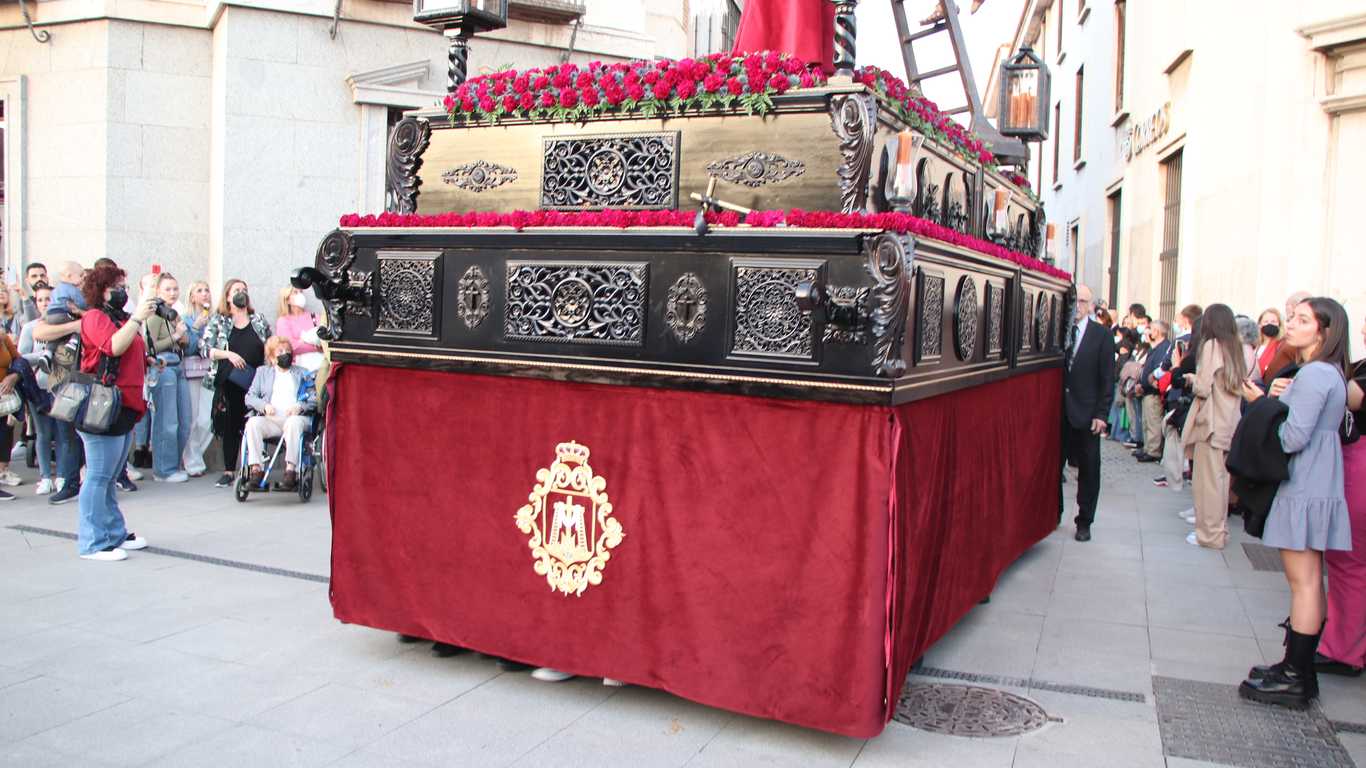 Y es que vecinos y visitantes de la Semana Santa de Alcalá de Henares esperaban con devoción y ganas a una de las procesiones más multitudinarias de la ciudad. La Soledad Coronada y El Sagrado Descendimiento salían de Santa María la Mayor ante la expectación de un público devoto en fe, pero también en cultura y tradición. Con los acordes de la Marcha Real interpretada por la Capilla musical Sagrado Descendimiento con el paso de misterio y la Asociación Musical Santa Cecilia de Tomelloso (Ciudad Real) en el paso de palio.
