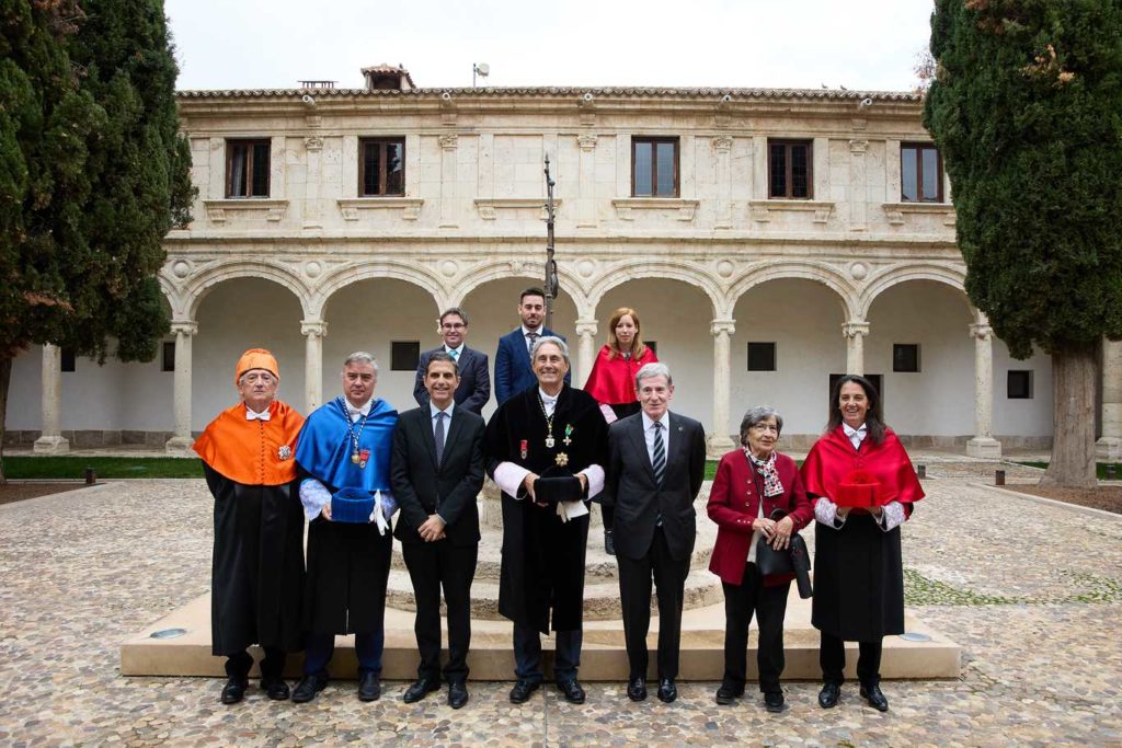 El acto se ha desarrollado en dos partes. Comenzaba en la Capilla de San Ildefonso, con la colocación de una corona de laurel a los pies del sepulcro de Cisneros, seguida de la investidura de los nuevos doctores que ha incorporado la Universidad de Alcalá durante el pasado curso.