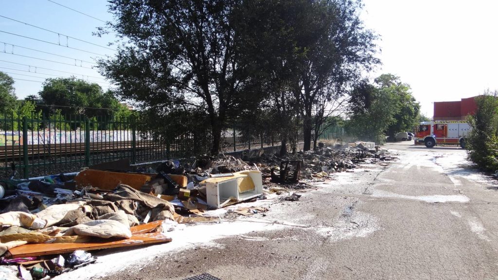 Al final del Polígono, junto al muro que lo separa de las vías del tren, hay una zona de escombros y basuras que ha ardido provocando el fuego y la gran nube de humo. Las primeras pesquisas apuntan a un incendio provocado.