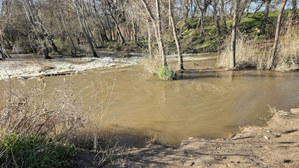 En ellas se puede apreciar cómo el cauce ha crecido hasta lo que podría ser medio metro, y las aguas bajan con gran ritmo en dirección a su desembocadura en el río Jarama, donde confluyen en la localidad de Mejorada del Campo.