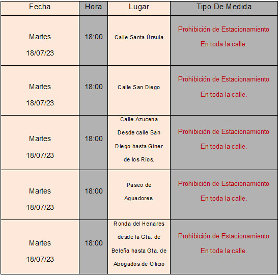 Los preparativos de la prueba darán comienzo el martes 18 de julio. A partir de las 18.00 h comenzará el plan de desalojo de vehículos en las vías por las que transcurre la prueba, por ello recomendamos eviten el estacionamiento de sus vehículos en las calles afectadas y señalizadas con motivo de la carrera.