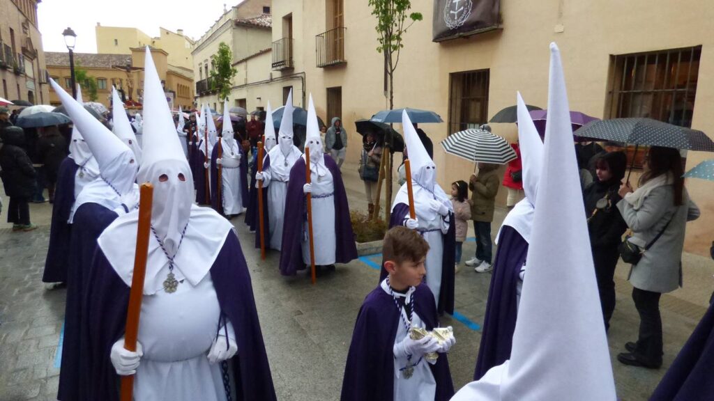 Están más que acostumbrados a los sinsabores y a llevar con resignación cristiana los reveses que a veces se les presentan. Ahora, este Miércoles Santo de 2025, el cielo se presentaba amenazante a las 19:30 a las puertas del patio del Monasterio de Nuestra Señora de la Esperanza (vulgo ‘Las Claras’). Pero los hermanos del hábito blanco y capa morada decidieron salir.