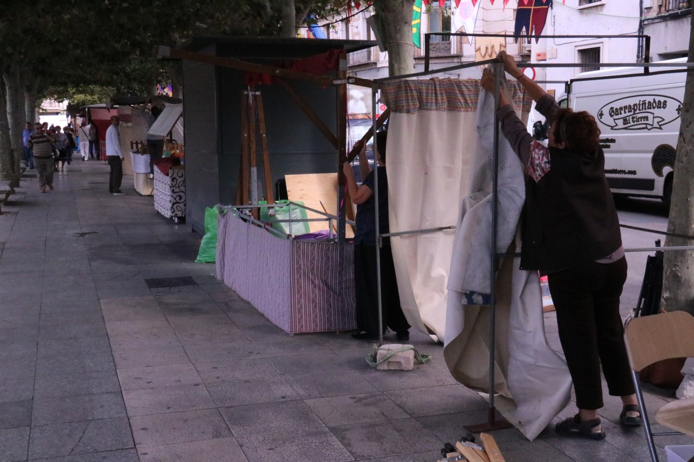 En estos momentos la plaza de Cervantes y aledaños está en plena ebullición con decenas de puestos el pleno proceso de montaje e instalación, con el fin de que todo está preparado para mañana viernes.