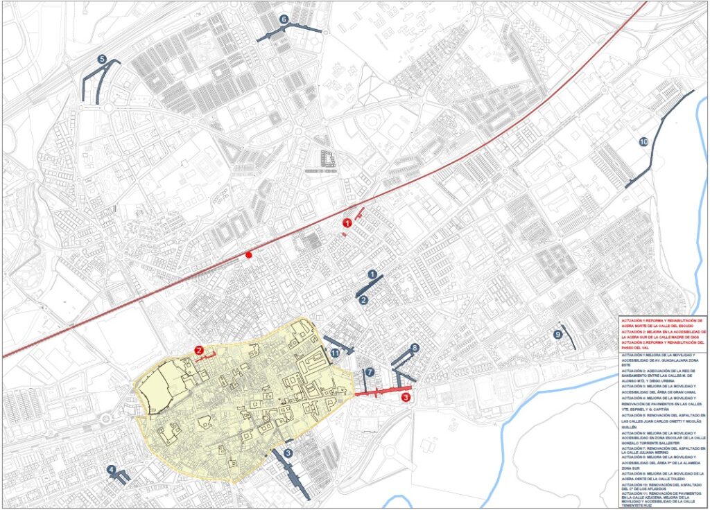Entre las diferentes actuaciones, figuran la mejora en el entorno de Gran Canal, una obra muy demandada por los vecinos en la que se mejorará con creces la movilidad tanto de los viandantes como de los vehículos, pues el pavimento lleva años en muy malas condiciones, y representará un salto de calidad no solo para el barrio Venecia, sino para la comunicación entre el casco histórico y la ribera del Henares. Este proyecto contempla la eliminación de barreras arquitectónicas, la optimización de la movilidad peatonal y la mejora del estado del firme y las infraestructuras existentes. Además, se llevará a cabo la renovación, mejora y ampliación de las aceras en tramos de la calle Gran Canal. Además, se repararán los desperfectos y se asfaltará un tramo de la calle Carmen Descalzo.