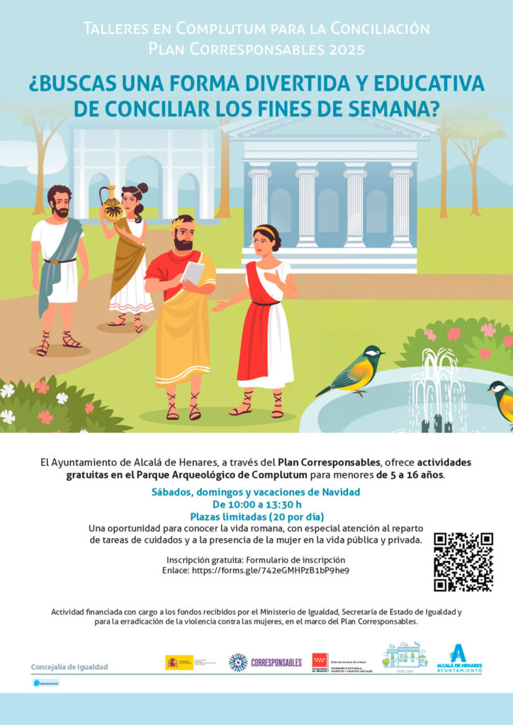 La concejalía de Igualdad del Ayuntamiento de Alcalá de Henares ha puesto en marcha, en el marco del Plan Corresponsables 2025, unos talleres para la conciliación que tendrán lugar en el Parque Arqueológico de Complutum.