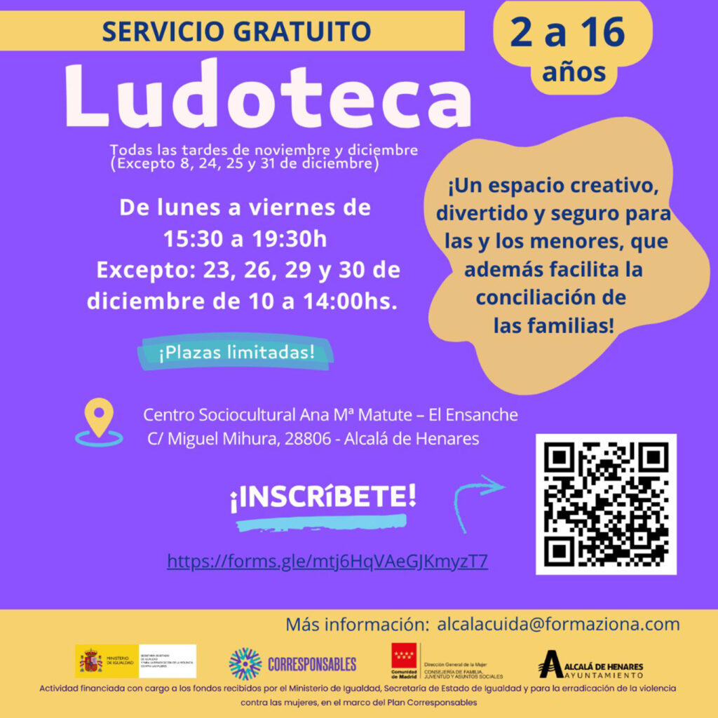 Esta ludoteca cuenta con plazas limitadas y la inscripción, gratuita, se puede realizar en el siguiente formulario: https://forms.gle/mtj6HqVAeGJKmyzT7