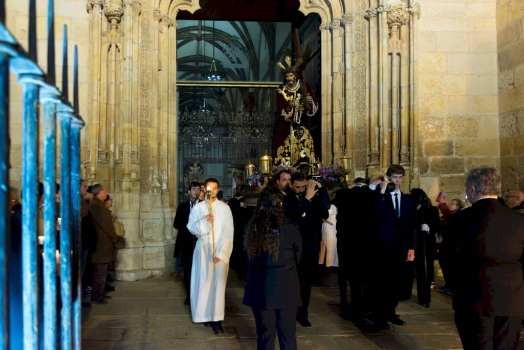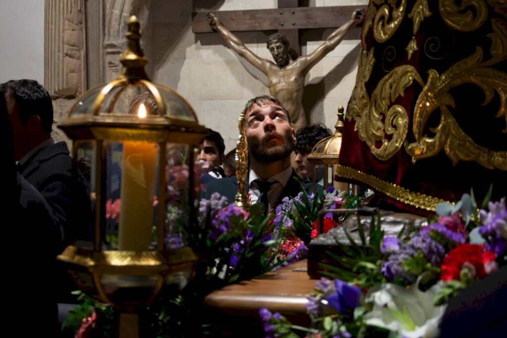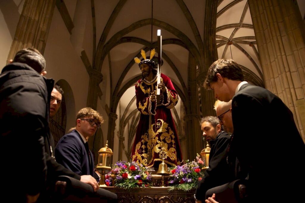 La Cofradía del Cristo de la Columna será la encargada de llevar el paso del Señor, con el acompañamiento musical del Trío de Capilla de Juventudes Musicales de Alcalá.