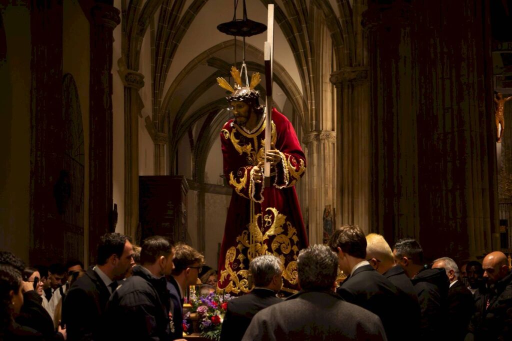El esfuerzo de los costaleros, visible en cada levantá y en cada giro por las estrechas calles del casco histórico, fue reconocido por los aplausos contenidos del público en puntos clave del recorrido.
