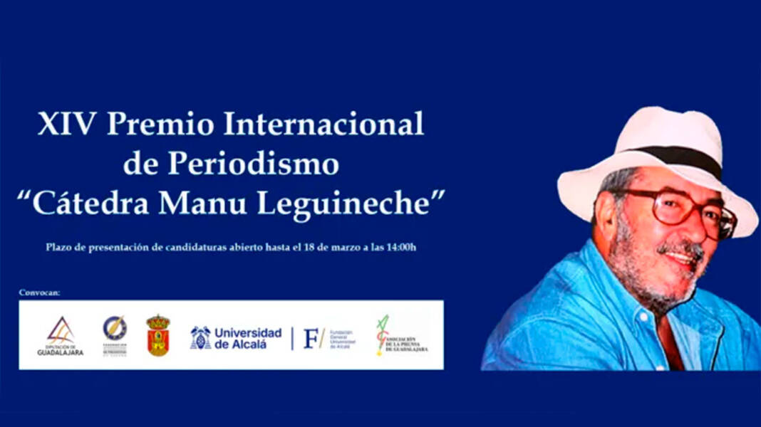 La Universidad de Alcalá (UAH), la Federación de Asociaciones de Periodistas de España (FAPE), la Diputación de Guadalajara, el Ayuntamiento de Brihuega, la Asociación de la Prensa de Guadalajara y la Fundación General de la Universidad de Alcalá, convocan el XIV Premio Internacional de Periodismo ‘Cátedra Manu Leguineche’, con el que se pretende honrar la figura de aquellos periodistas cuya trayectoria sea destacable por su independencia, rigor, respeto a la verdad y defensa de la libertad de información, así como de aquellas instituciones o medios de comunicación que hayan destacado en estos valores.