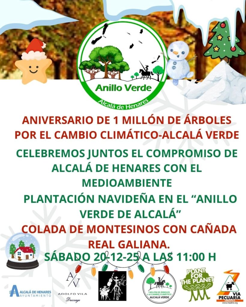 “1 Millón de Árboles por el Cambio Climático – Alcalá Verde” celebrará el próximo sábado 20 de diciembre de 2025, a las 11:00 h, un acto conmemorativo por su aniversario, una iniciativa que continúa creciendo gracias al compromiso ciudadano con la acción climática, la reforestación y la biodiversidad.