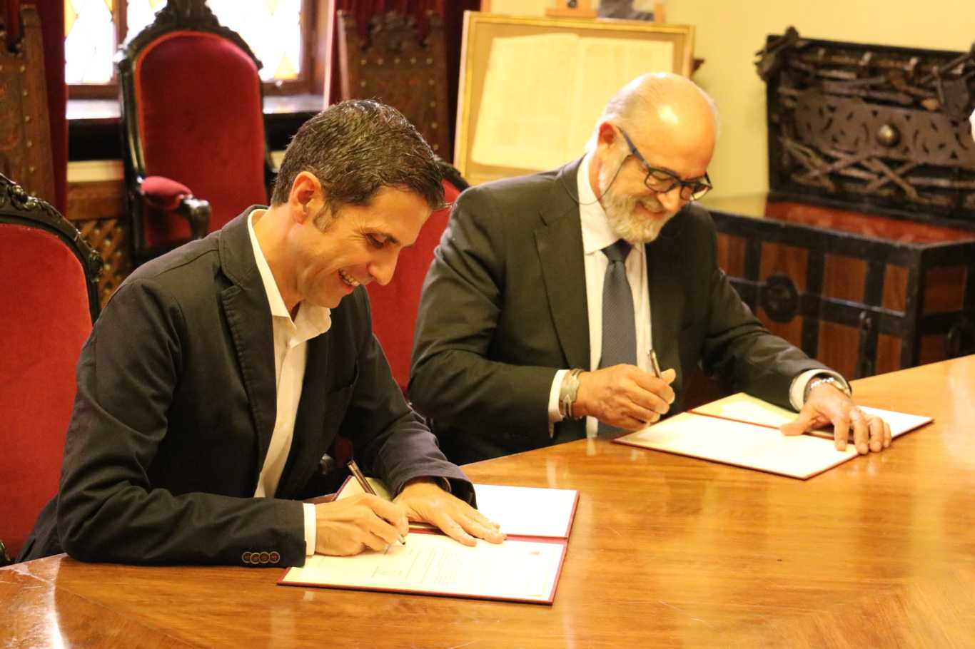 El alcalde de Alcalá de Henares, Javier Rodríguez Palacios, ha recibido esta mañana de manos del pintor Mariano Galán el cuadro de su autoría “Eterno”, donde se refleja en primer plano la estatua de Cervantes que preside la plaza alcalaína que lleva el nombre del escritor más universal de la literatura española.