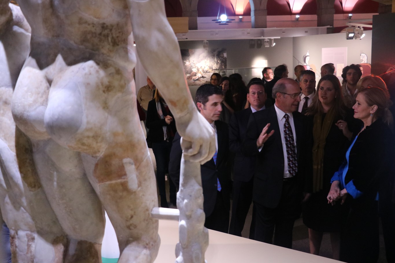 La presidenta de la Comunidad de Madrid, Cristina Cifuentes ha sido la responsable de la inauguración de la exposición, acompañada por el alcalde de Alcalá de Henares, Javier Rodríguez Palacios, el director del Museo Arqueológico Regional, Enrique Baquedano, y el comisario de la exposición, el catedrático de Arqueología Manuel Bendala.