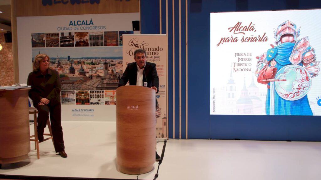 Asimismo, Ruiz Maldonado ha destacado la dimensión artística del evento y la continuidad del trabajo gráfico y creativo vinculado a la Semana Cervantina. En este contexto, ha presentado el nuevo vídeo promocional del Mercado Cervantino, realizado por Claudio Monterroso, gestor de contenidos de la Noche en Blanco. «Este año además tenemos un nuevo vídeo promocional realizado por Claudio Monterroso, que ha hecho doblete para este Fitur con Semana Cervantina y Noche en Blanco», ha señalado.