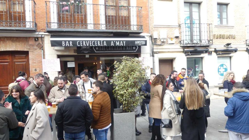 Para empezar, la calle Bedel. El Hidalgo ‘la auténtica taberna alcalaína’ y su vecino del Cañaveral estaban a reventar. Tanto es así que tras la barra del primero se tuvo que meter Jose, el mayor de los ‘Antolín’ y gerente de La Cúpula, a poner cañas.