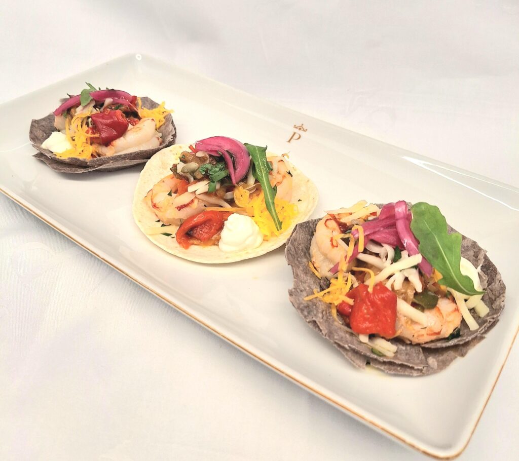En la versión elaborada por el restaurante complutense, el ingrediente principal son los gambones, que aportan un toque distintivo manteniendo la esencia de la receta original. El plato se presenta pensado para compartir, siguiendo la tradición de la cocina mexicana, donde la comida es también una experiencia social.