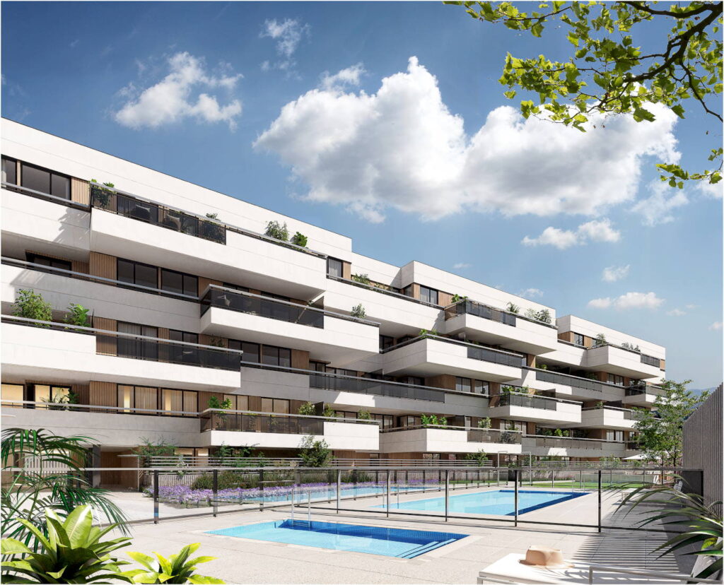 En este contexto, Neinor Homes presenta Alovera Collection Homes, una promoción de 61 viviendas de dos y tres dormitorios diseñada por Rubio Arquitectura. El proyecto responde al perfil del comprador actual, que prioriza espacio, eficiencia y servicios.