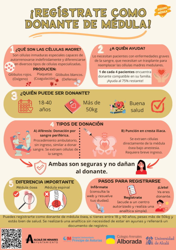 Un grupo de alumnos de Bachillerato del Colegio Alborada, en Alcalá de Henares, ha desarrollado un proyecto de Aprendizaje y Servicio para fomentar la donación de médula ósea y de sangre de cordón umbilical, una iniciativa que busca ayudar a pacientes que necesitan un trasplante y que combinan aprendizaje académico con servicio a la sociedad.
