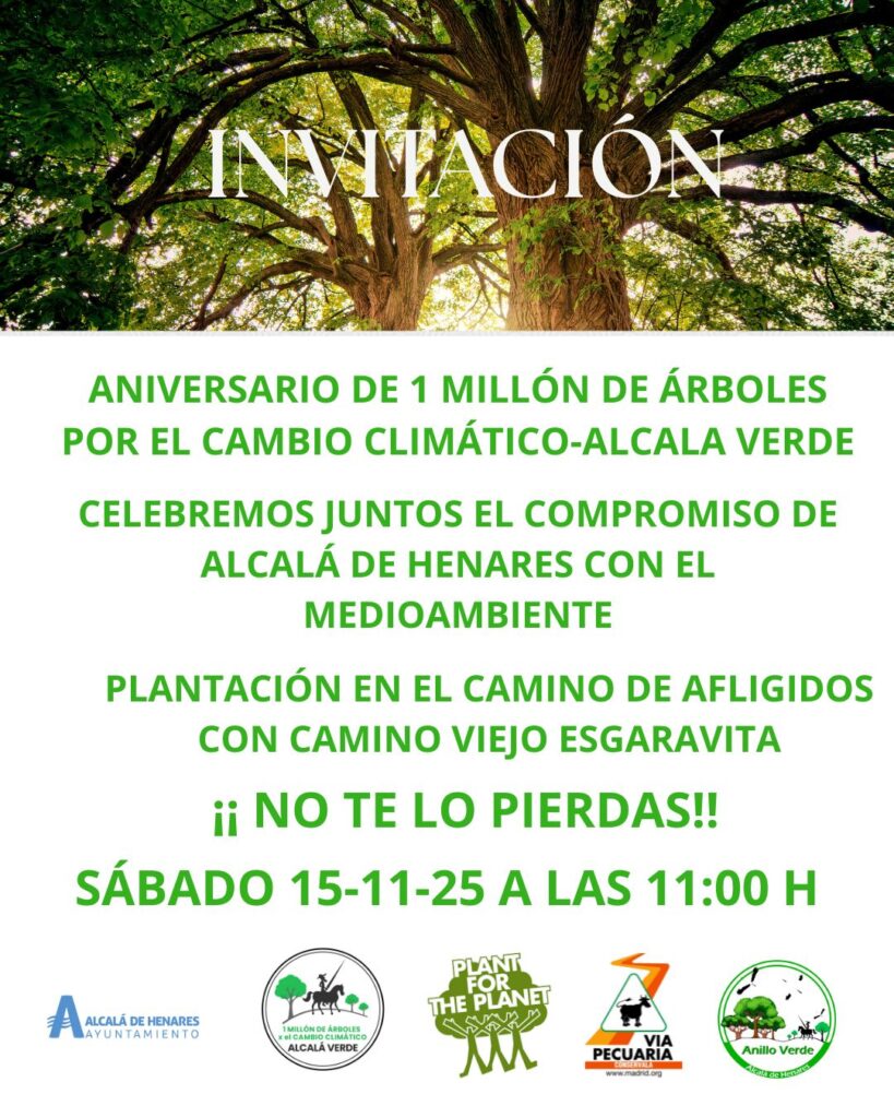 La Asociación ‘Un Millón de Árboles por el Cambio Climático-Alcalá Verde’ celebra una jornada conmemorativa de su Aniversario el próximo 15 de noviembre en el Camino de los Afligidos (con camino viejo de la Esgaravita) de Alcalá de Henares.