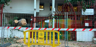 Las fuertes rachas de viento arrancan un árbol en el colegio Emperador Fernando