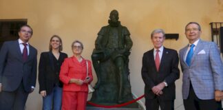 La nueva estatua de Cervantes ya está en Alcalá de Henares