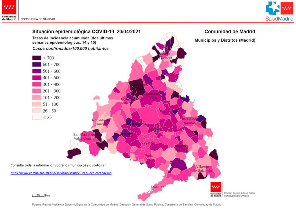 Al cierre del día anterior, el viernes 23 de abril, la Comunidad de Madrid suma un total de 680.538 pacientes afectados por coronavirus en datos contrastados desde el inicio de la pandemia. La Consejería de Sanidad ofrece el dato de 2.473 casos nuevos notificados incorporados, 1.912 de ellos en las últimas 24 horas.