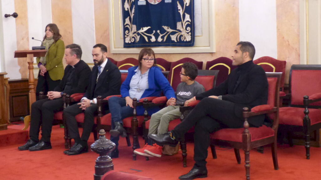 El salón de plenos del Ayuntamiento ha acogido el acto de entrega de la Beca de San Diego que otorga la Hermandad Franciscana de Nuestro Padre Jesús Resucitado, Nuestra Señora de la Salud y el Perpetuo Socorro y San Diego de Alcalá. El beneficiario en esta oportunidad ha sido el niño Erick Ruiz Rubio, que padece una grave lesión cerebral llamada Leucomalacia Periventricular Moderada.