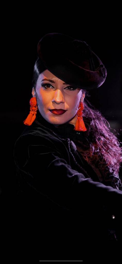 Por su parte, Ángela Alhambra interpretará a la gitanilla, un rol que dialoga con la figura femenina asociada al baile flamenco y a los espacios de libertad creativa que se les concedían a las bailaoras en los cafés cantantes. Su presencia escénica busca aportar fuerza, sensibilidad y un carácter simbólico que atraviesa toda la obra.