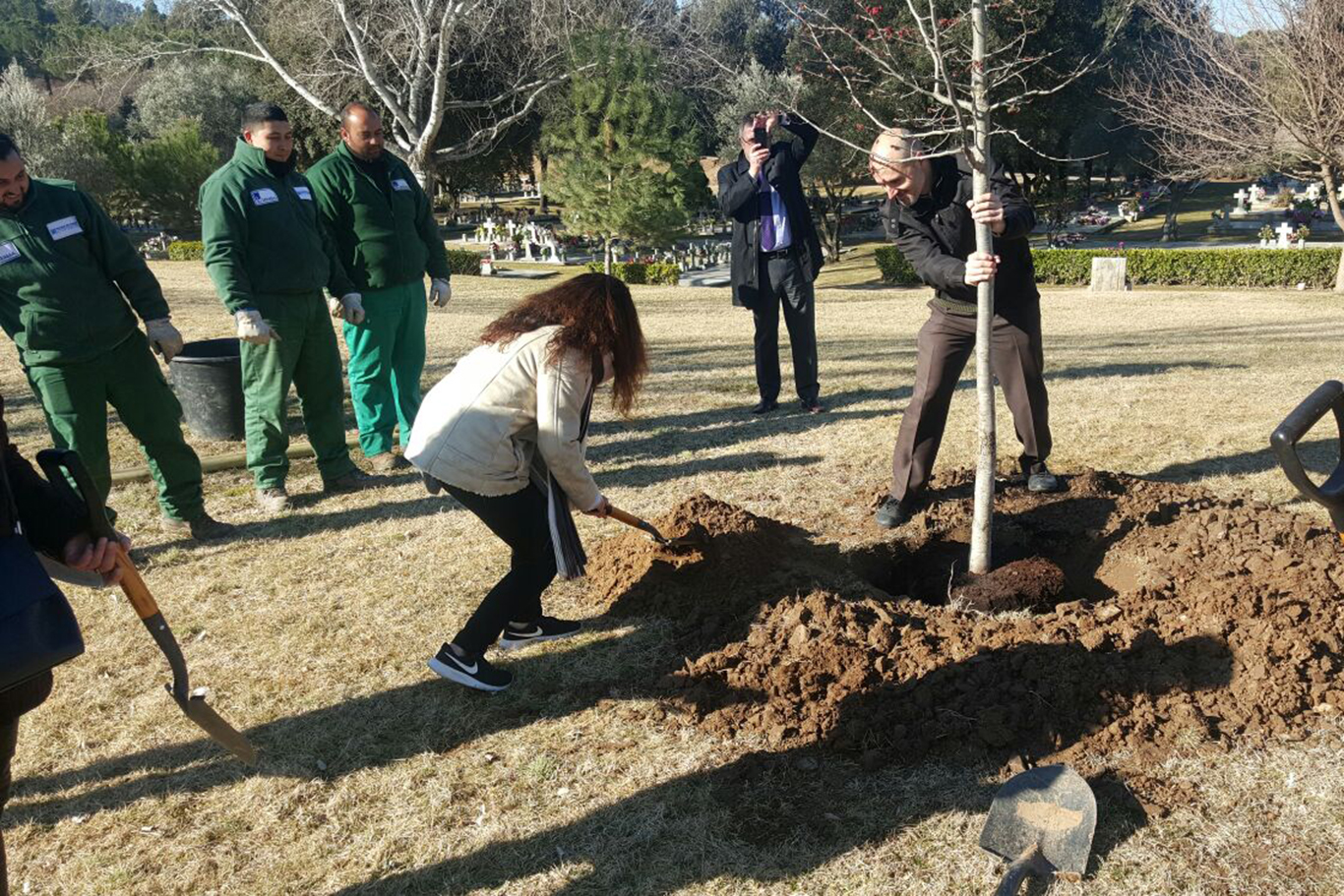 Durante la plantación, el concejal de Medio Ambiente, Alberto Egido, ha estado acompañado por José Vicente Aparicio Ferri, subdirector General de Funespaña, Jesús Pozo, director de la Revista Adiós, y Mercedes García Herreruela, directora de Servicios de Cementerio Jardín.