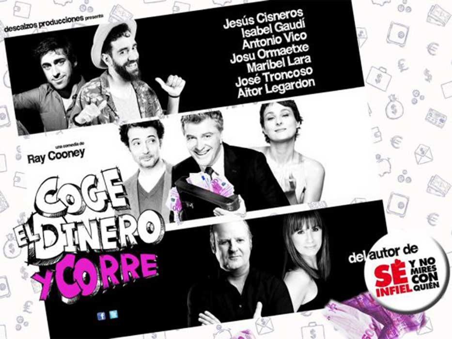 Coge el dinero y corre evoca una de las primeras películas de Woody Allen, de título Take the Money and Run, basada en la comedia Funny Money del británico Ray Cooney estrenada en Londres allá por 1994.