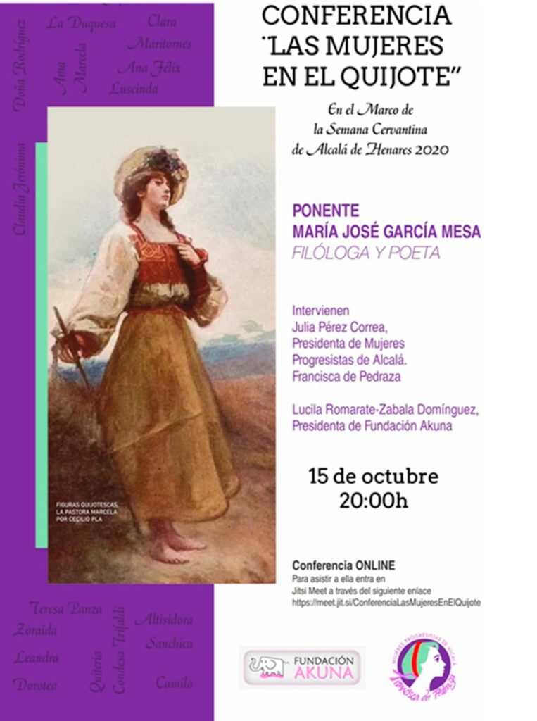 En el marco de la Semana Cervantina de Alcalá de Henares, la Asociación Mujeres Progresistas de Alcalá Francisca de Pedraza organiza una conferencia online ‘Las Mujeres del Quiojote’.