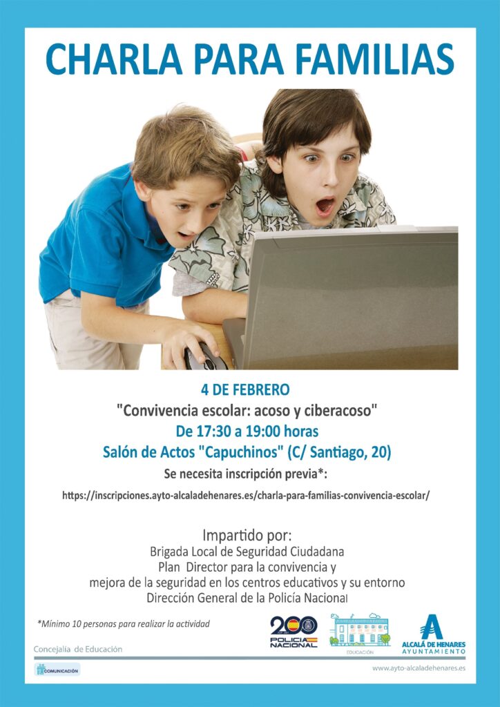 Para asistir a la conferencia será necesario la inscripción previa antes de las 12 horas del mismo miércoles 4 de febrero en el siguiente enlace: https://inscripciones.ayto-alcaladehenares.es/charla-para-familias-convivencia-escolar/ (mínimo 10 personas para realizar la actividad).