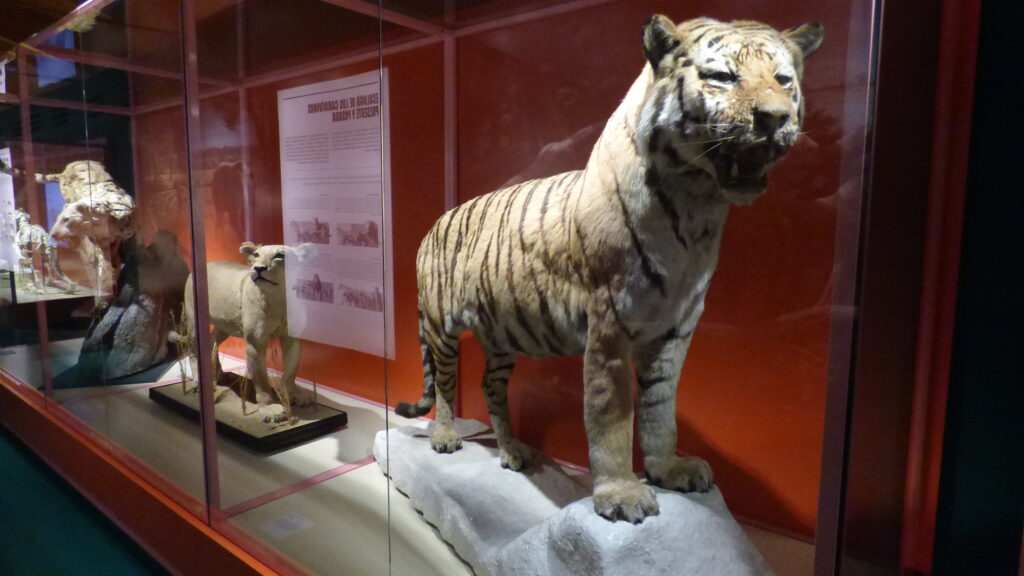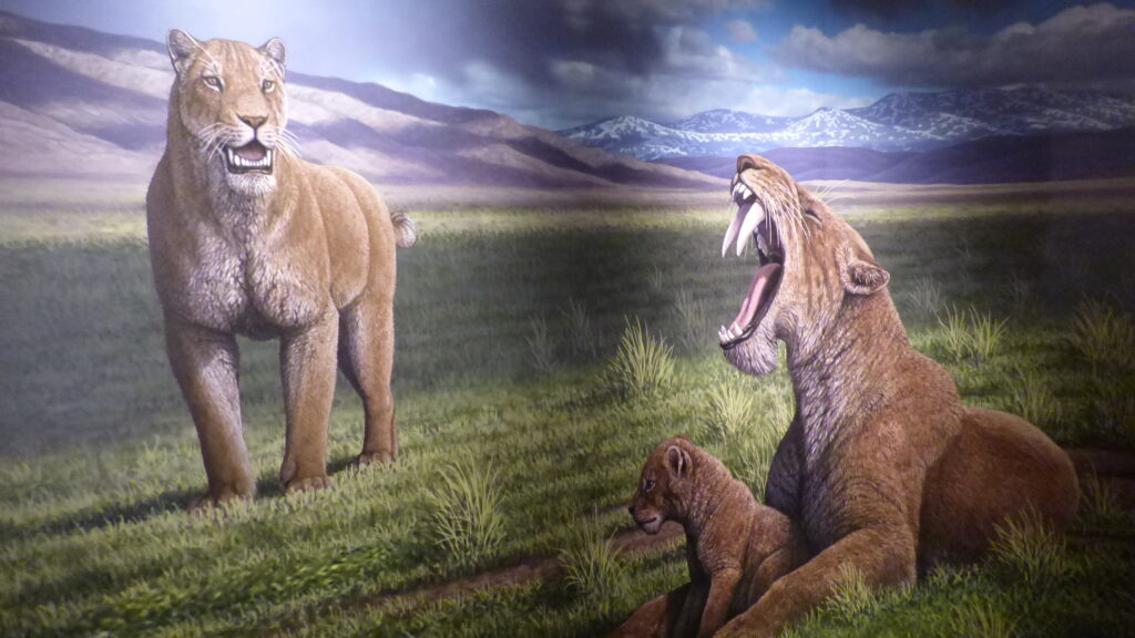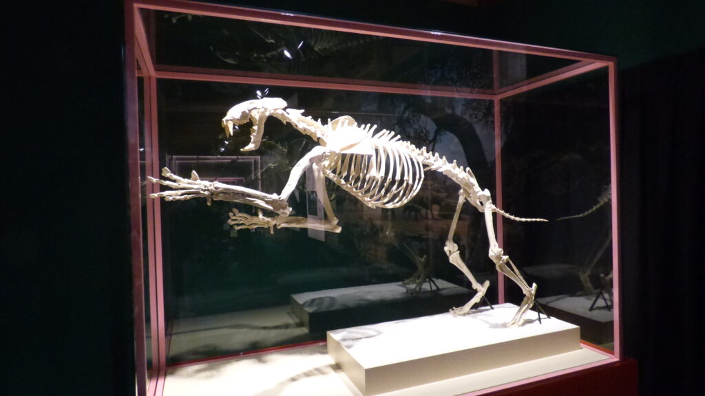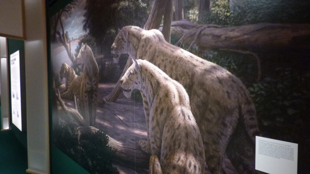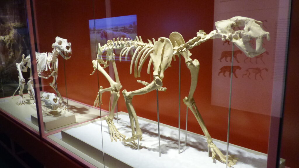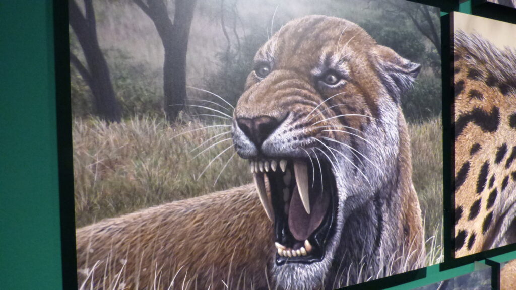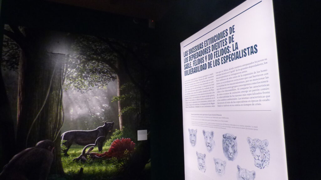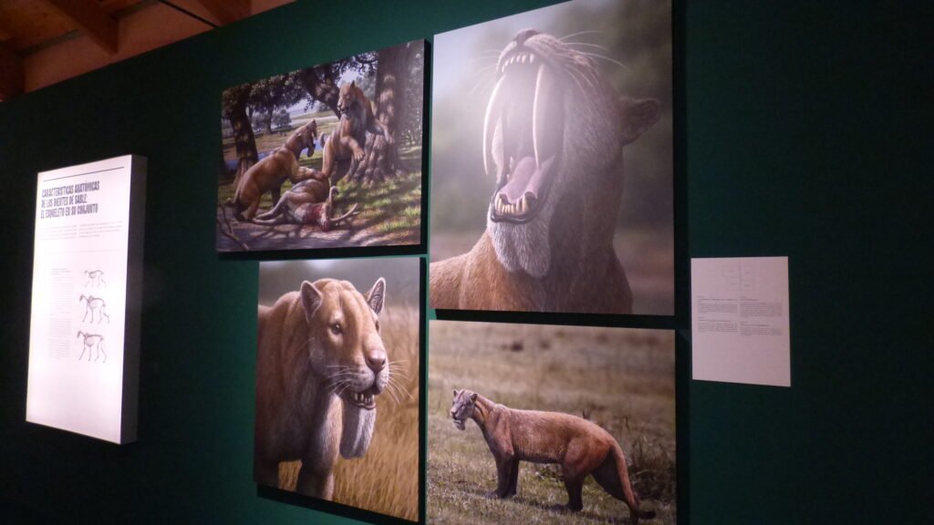 Los llamados popularmente tigres dientes de sable no fueron un único animal, sino una familia diversa de depredadores que habitaron distintos continentes durante millones de años. Desde las primeras especies del Mioceno hasta los célebres Smilodon del Pleistoceno americano, la exhibición recorre su historia evolutiva, mostrando cómo desarrollaron estrategias para cazar y sobrevivir.