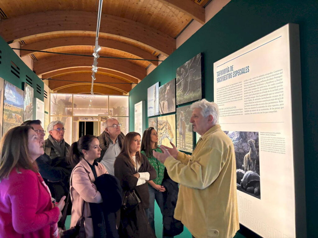 La comitiva, formada por Pedro María Corral Corral, Óscar Alegre Martín, Tomás Pedro Burgos Beteta, Mirina Cortés Ortega, Mónica Lavín Moreno Torres, Carlota Pasarón González, Sandra Samboal Ugena e Isabel Vega de la Vara, estuvo acompañada por el director del museo, Enrique Baquedano, también co-comisario de la exposición, quien ofreció explicaciones detalladas sobre los contenidos de la muestra, su relevancia científica y su aportación a la divulgación del patrimonio paleontológico.