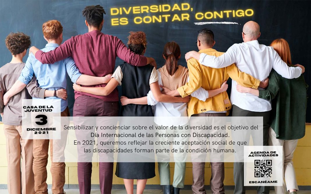El 3 de diciembre se celebra en todo el mundo el Día Internacional de las Personas con Discapacidad de acuerdo a la resolución 47/3 de 1992 de la Asamblea General de las Naciones Unidas, y el Ayuntamiento de Alcalá de Henares, a través de las concejalías de Diversidad y Solidaridad, Salud y consumo, y Juventud e Infancia, invita a participar en una creativa agenda de actividades de sensibilización y concienciación en torno al valor de las diversidades funcionales en el contexto actual.