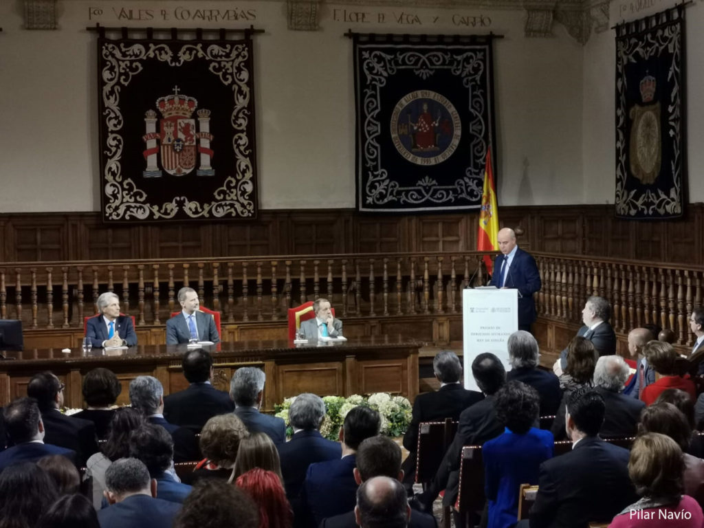 El Rector de la UAH, José Vicente Saz, destacó en su discurso “la necesidad de promover iniciativas como el Premio de Derechos Humanos Rey de España, que desea ser un altavoz para la defensa de los derechos fundamentales, para luchar por la dignidad de cada persona, de cada pueblo, para avanzar hacia el futuro guiados por la justicia, la solidaridad y la libertad”.