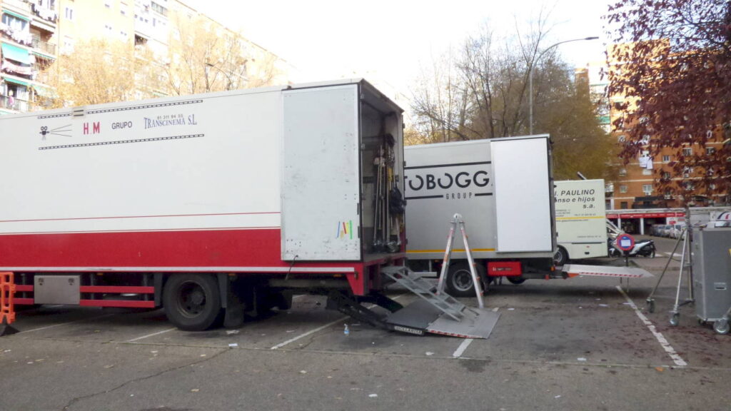 Estaban avisados porque toda la parte de atrás de esta calle, en la plaza Alonso Carrillo estaba reservada para el aparcamiento de la decena de camiones necesarios para llevar a cabo la producción.