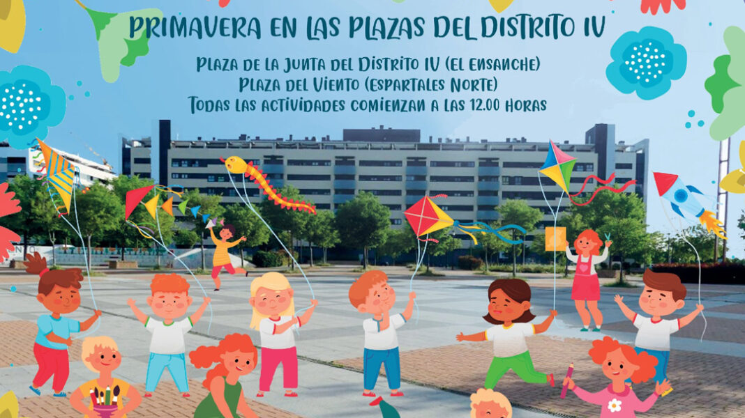 El Distrito IV da la bienvenida a la primavera con una completa y novedosa programación de actividades culturales, educativas y de ocio dirigidas a niños y niñas de entre 3 y 12 años. Bajo el lema “Primavera en las plazas del Distrito IV”, el programa se desarrollará entre el 25 de abril y el 21 de junio en dos espacios del distrito, en la Plaza de la Junta Municipal del Distrito IV y la Plaza del Viento, distribuyéndose así entre los barrios de Espartales Norte y el Ensanche, para dar cobertura a todo el Distrito.