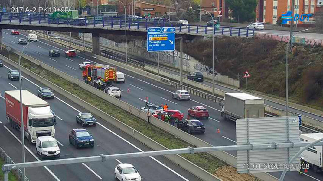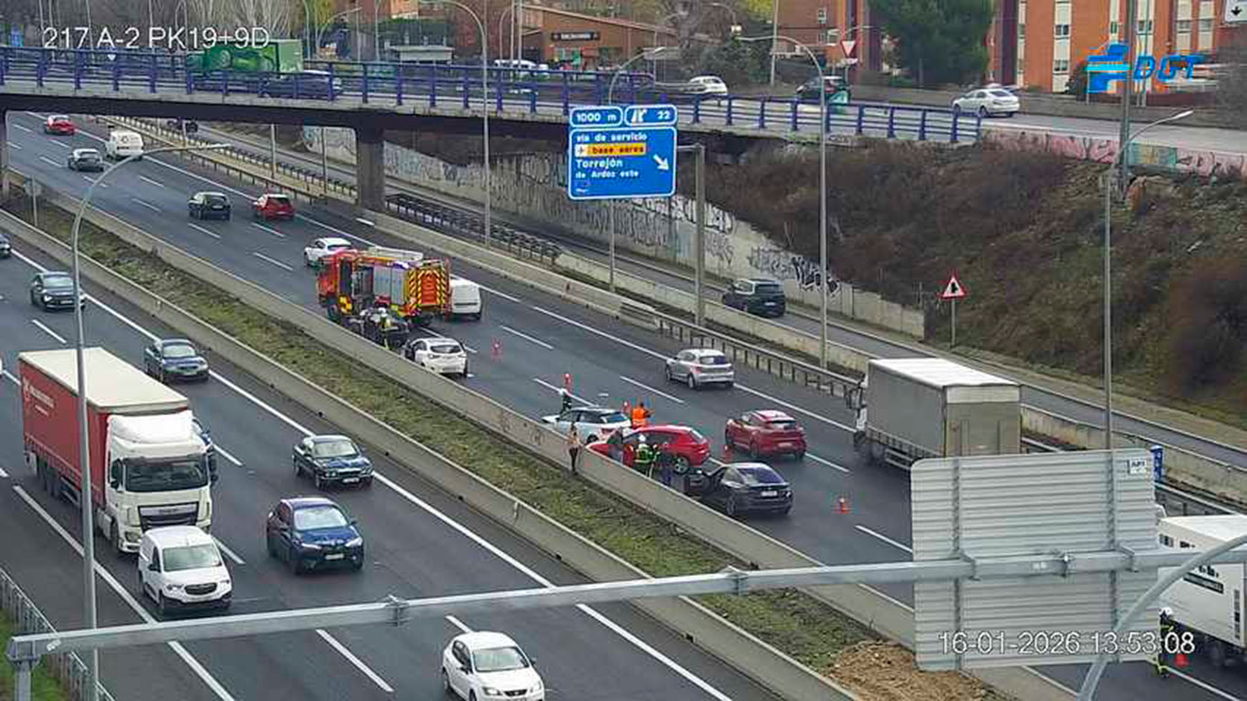 Al menos tres turismos se han visto implicados en un siniestro en la A-2 en dirección Alcalá de Henares, a la altura de la salida de la Base Aérea de Torrejón de Ardoz. Por el momento se desconoce si hay heridos, aunque a la zona ha llegado una dotación de Bomberos.