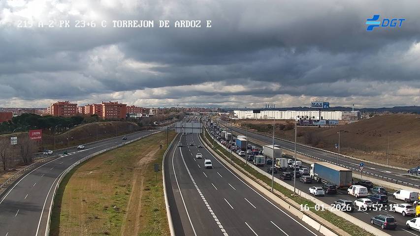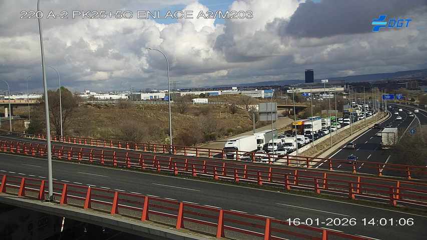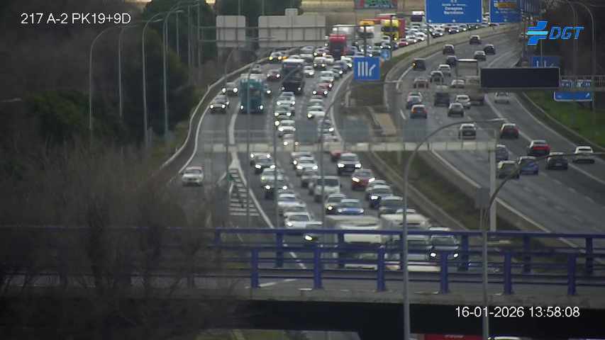 Así, la retención de salida de Alcalá comienza en el punto del incidente, en el kilómetro 22, y se ha llegado a extender hasta el kilómetro 29 de la A-2 en sentido Madrid, a la altura de los barrios de Espartales y El Ensanche de Alcalá de Henares.