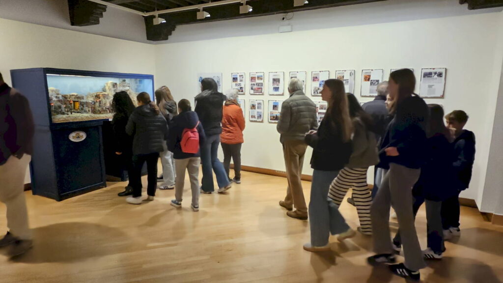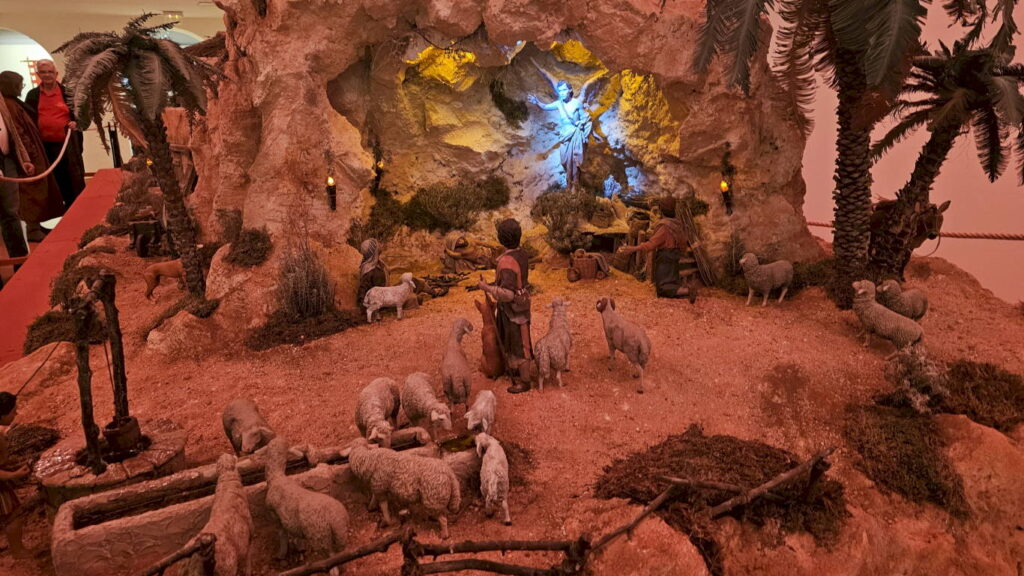 El belén de este año ocupa una superficie de ocho metros por dos, una dimensión ligeramente inferior a la habitual debido a las características de la nueva sala, aunque mantiene la amplitud y riqueza escénica que lo han convertido en una referencia navideña. El montaje reúne más de 140 figuras, entre unas 70 de personajes y otras tantas de animales —cabras, ovejas, camellos, gallinas, perros o gatos—, todas ellas elaboradas en barro, bien “a palillo” o mediante molde, según el imaginero.