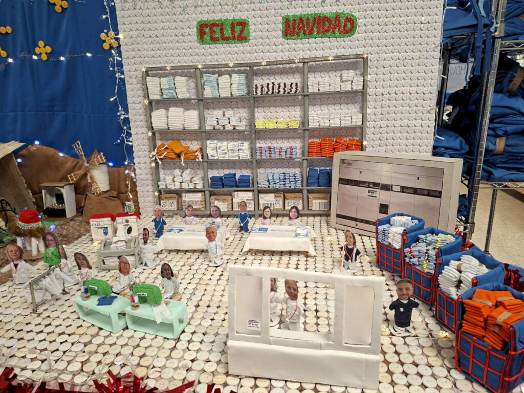 El Hospital público Príncipe de Asturias de Alcalá de Henares ha ganado el VIII concurso de Belenes en entornos sanitarios de la Comunidad de Madrid. La composición premiada ha sido presentada por el Servicio de Lencería, cuyo personal se esfuerza día a día por garantizar que pacientes y profesionales dispongan de pijamas y batas en perfectas condiciones.