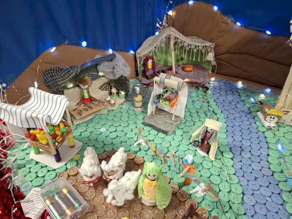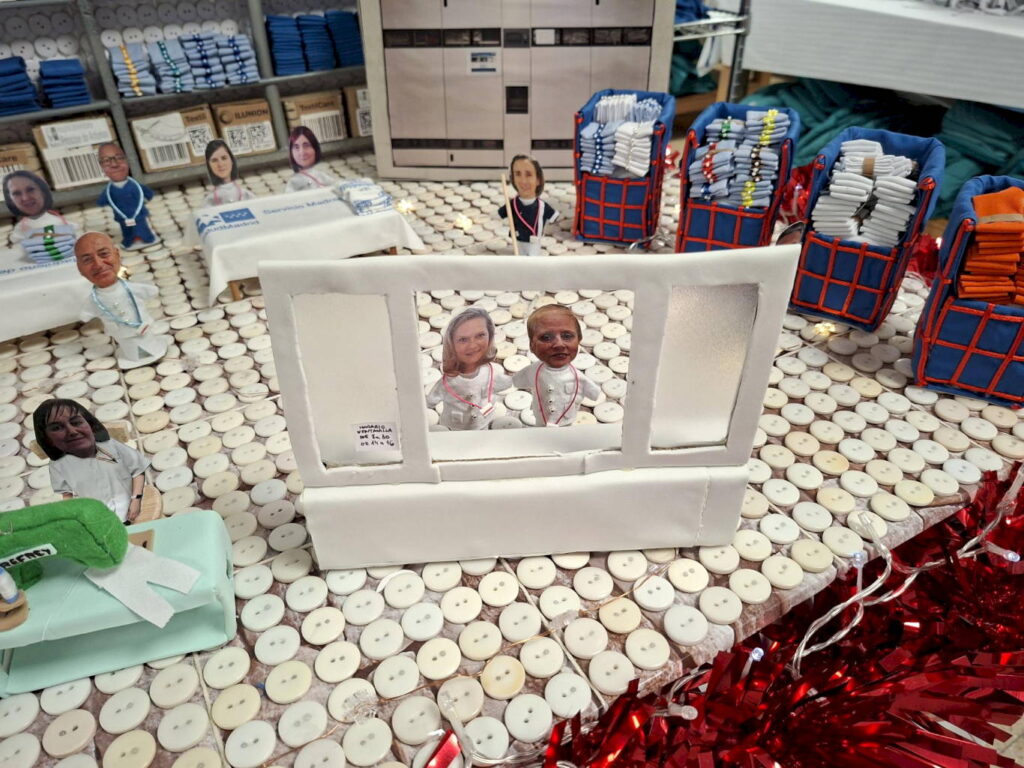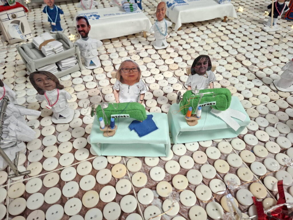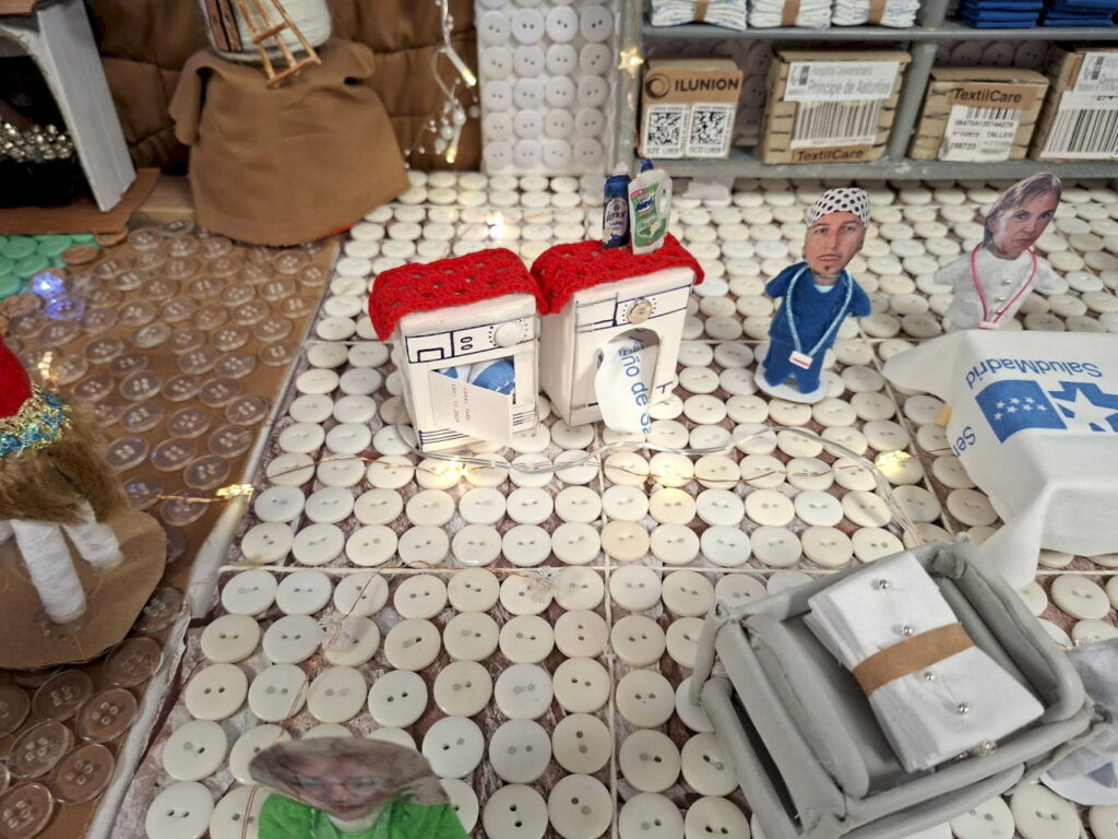 La creación triunfadora, que ha destacado por su calidad en la ejecución y originalidad, está realizada con bobinas de hilo, botones, dedales, tela y goma e incluye una recreación de máquinas de coser, material de lavandería, carros y cestos de ropa, con los propios profesionales presentes junto a los Reyes Magos.