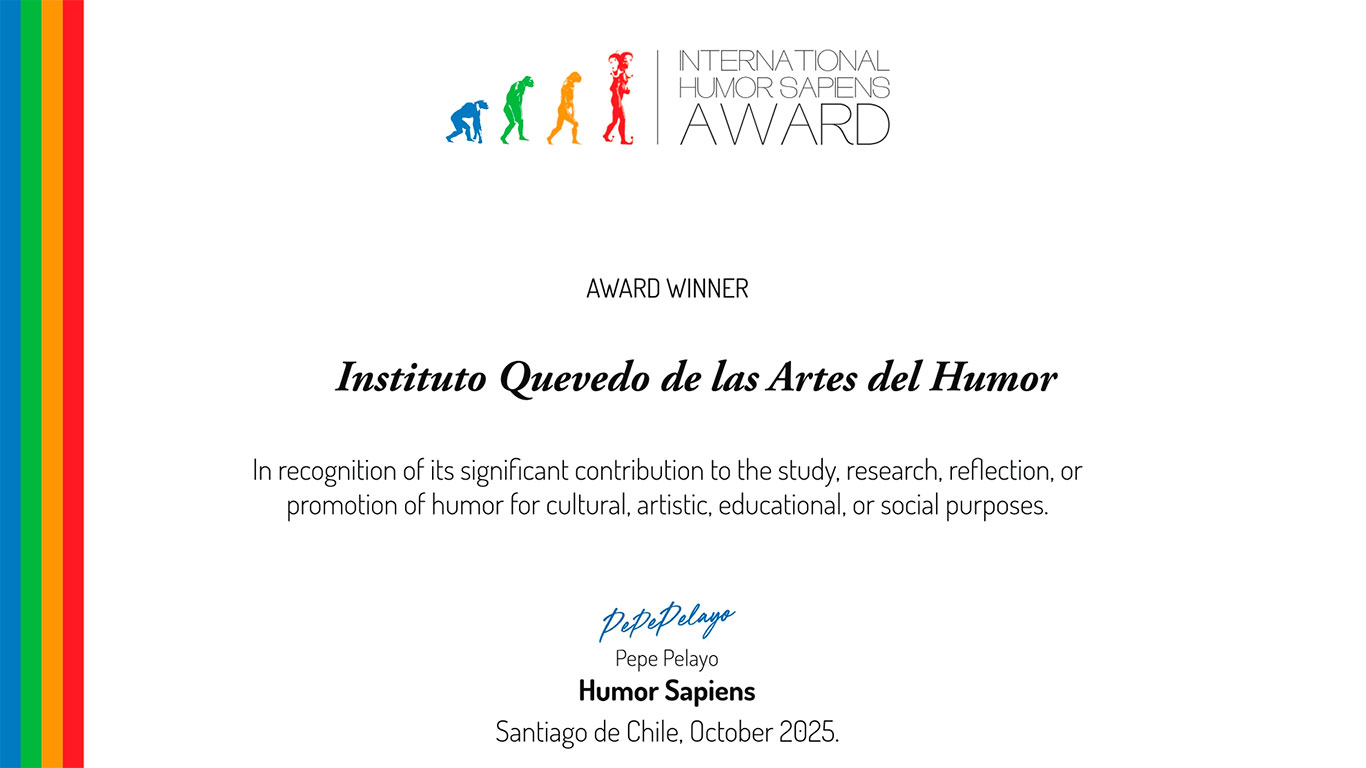 El Instituto Quevedo de las Artes del Humor (IQH) recibe el Premio Internacional Humor Sapiens 2025, en su categoría de Institución Destacada por “haber contribuido de manera excepcional” al ámbito del humor.