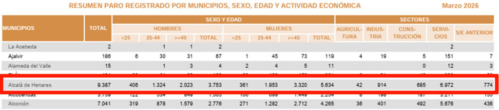 Como cada mes, también en marzo de 2026, la mayoría de las desempleadas son mujeres. Así, el paro femenino se sitúa en 5.634 personas, con 24 empleadas menos trabajando que el mes pasado. También sube en los hombres, con 3.753 parados, 56 empleados menos.