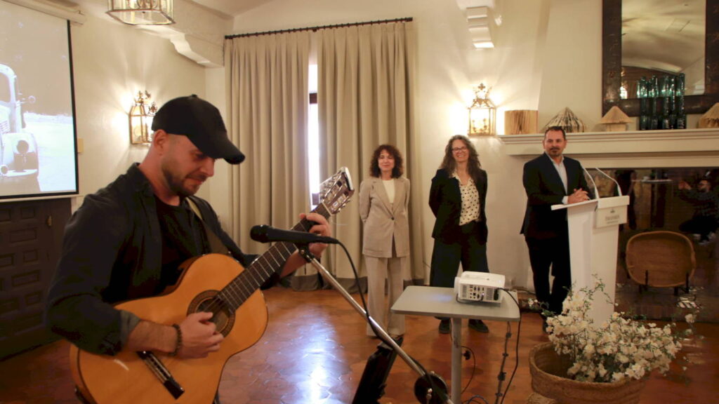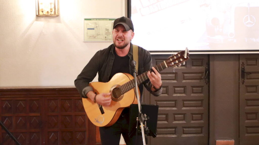 Al finalizar el acto, el artista alcalaíno Luis de Diego tocó a la guitarra la famosísima canción de la seie Cuéntame.