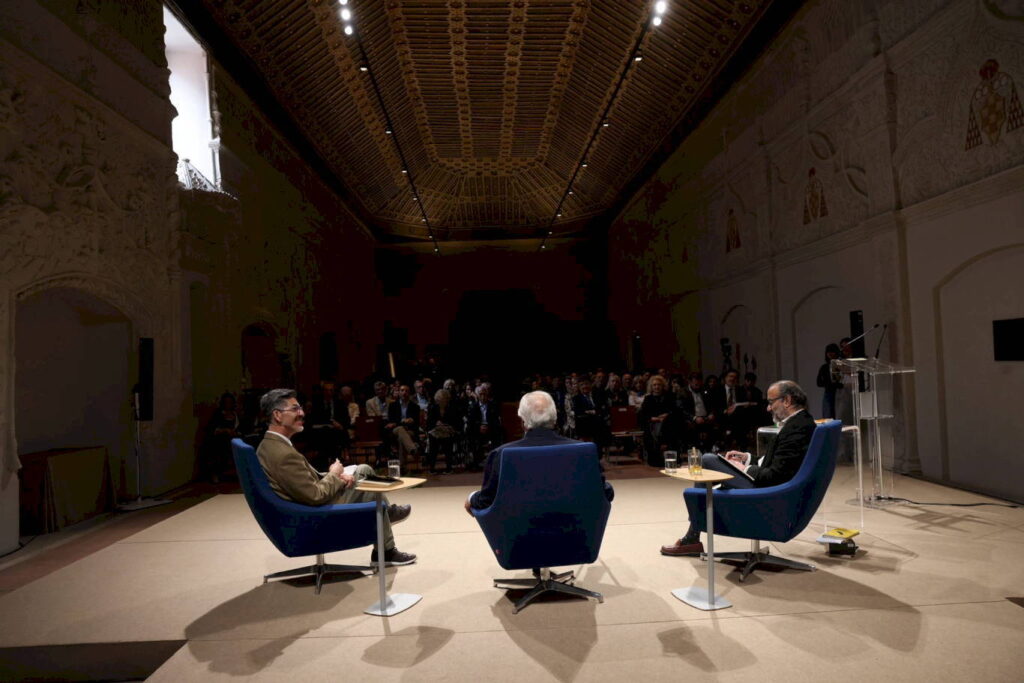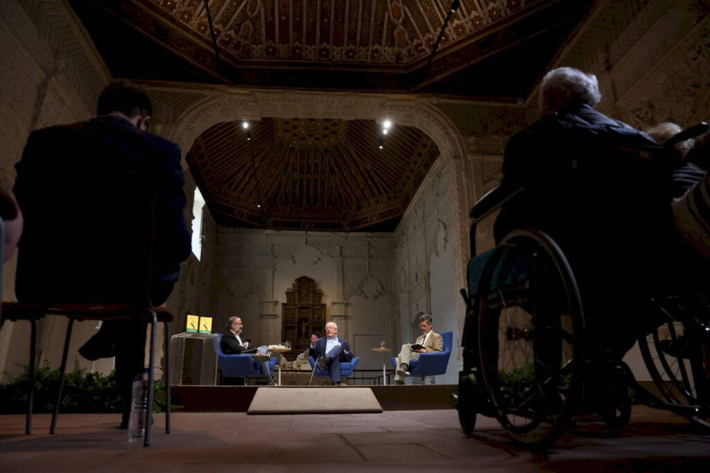 Ya en la Capilla de San Ildefonso, Gonzalo Celorio ha participado en un encuentro con la comunidad universitaria, durante el cual se ha presentado el libro Del esplendor de la lengua española, que coeditan la Universidad de Alcalá y el Fondo de Cultura Económico, dentro de la colección Biblioteca Premios Cervantes.