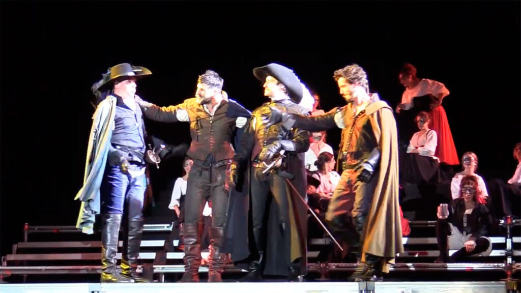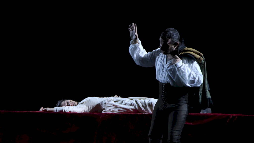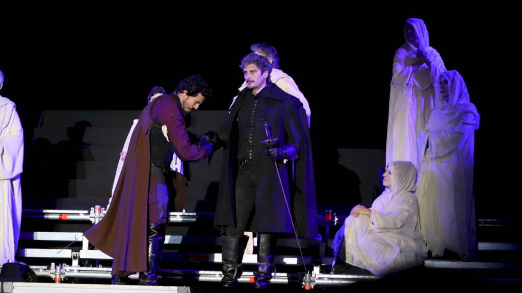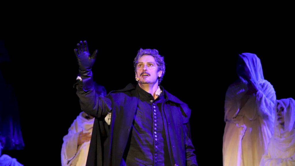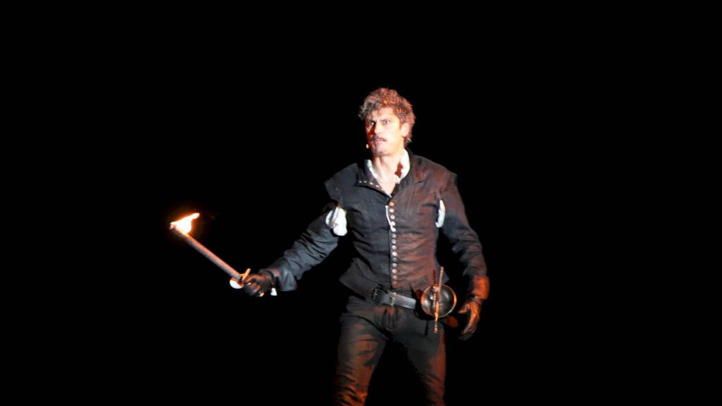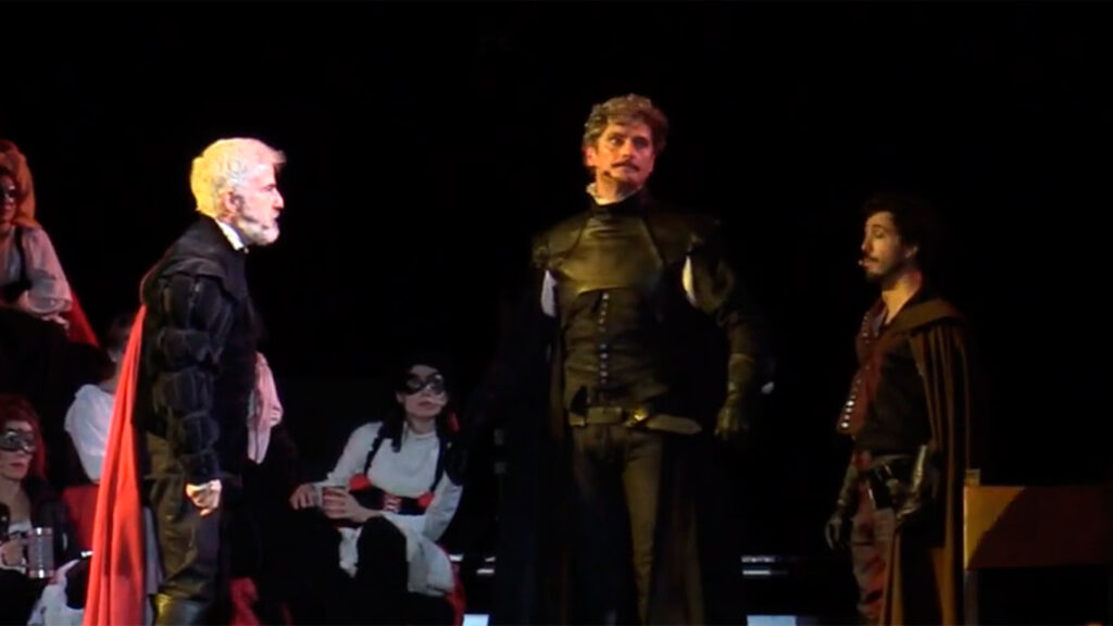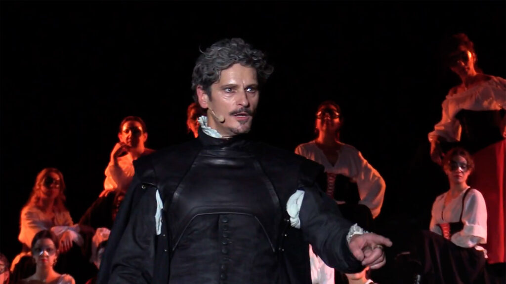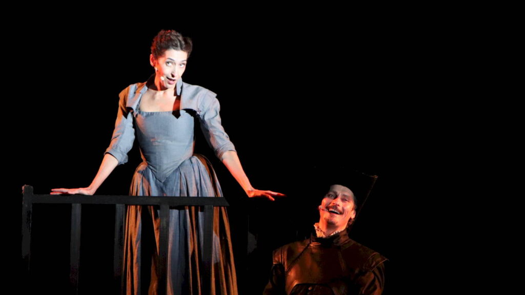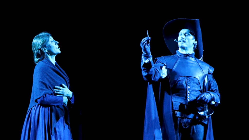 Un pasaje que arrancó sin texto y donde el vestuario, el maquillaje y la música tomaron todo el protagonismo con un impresionante cambio de registro de todos los actores que no solo volvieron a entonar el ‘Memoria amarga de mí’ sino que además sorprendieron con Doña Ana de Pantoja disparando, desde un púlpito frente al escenario, a Don Juan por el engaño de la víspera de su boda, entendemos que debió fallar.