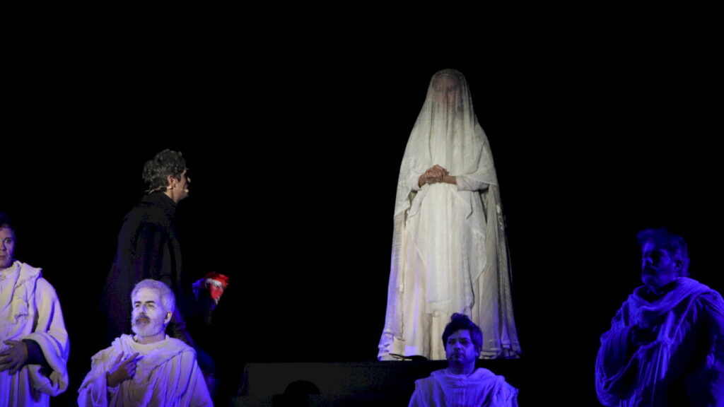 Uno de los nuevos actos de la versión de Yllana, cierto que el ‘Rapto de Doña Inés’ estaba incrustado en ‘La Celda de Doña Inés’, fue una magnífica Transición de los Muertos donde la Ánimas se llevaban al Comendador Don Gonzalo, que a partir de entonces pasaría a ser el Convidado de Piedra, y a Don Luis Mejía.