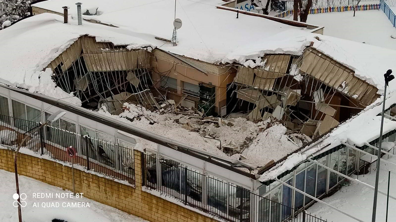 Se trata del bar del polideportivo de Iviasa el Chorrillo, y en la imagen se aprecia claramente cómo el tejado del cerramiento exterior de aluminio del bar ha cedido por el peso de la nieve y ha quedado totalmente destrozado.