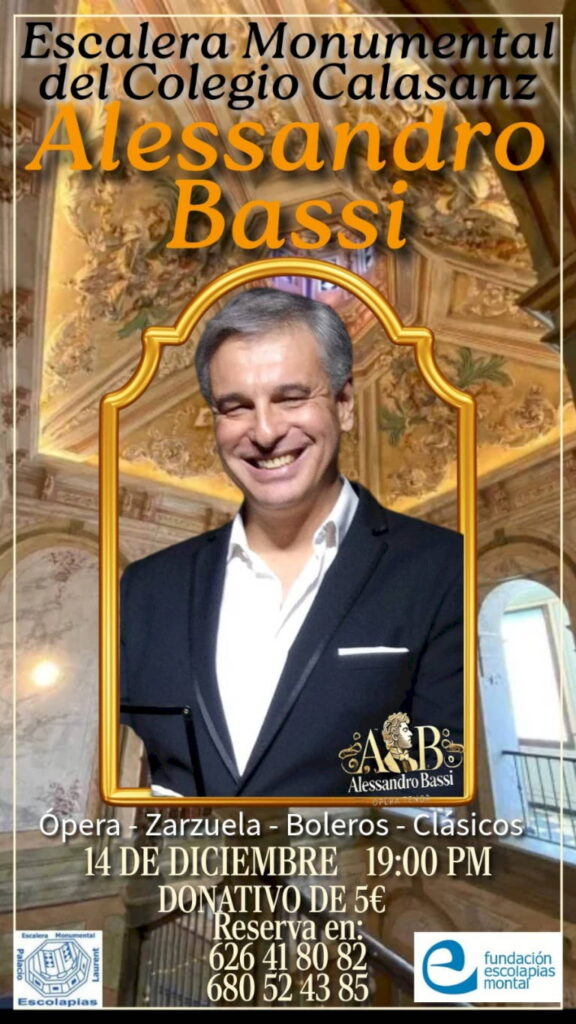 Tras el éxito de su actuación del pasado 4 de octubre, el reconocido tenor italiano Alessandro Bassi volverá a emocionar al público complutense con un nuevo concierto el próximo 14 de diciembre, a las 19:00 horas, en un escenario tan singular como histórico: la Escalera Monumental del Colegio Calasanz de las MM. Escolapias, obra del arquitecto Alberto de Churriguera, situada en la calle Santiago, 29.